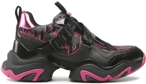 Sneakersy KARL LAGERFELD - KL62321 Black Lthr & Text W/Pink